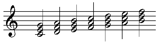 - Or they can be thought of as three notes (1st, 3rd and 5th) on each note of a particular scale, they are different ways of looking at the same thing.