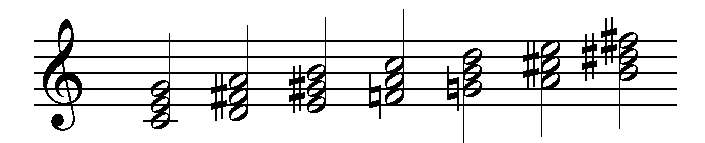 - Here are the (root) triads of the keys of C, D, E, F, G, A and B major: