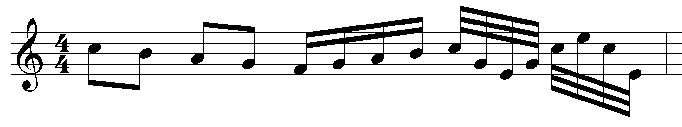 - In the example below, the quavers, semiquavers and demisemiquavers are beamed together in full beats or half-beats, for ease of readability. Notice how stems are lengthened or shortened in the last two groups to keep the beams at a reasonable angle.