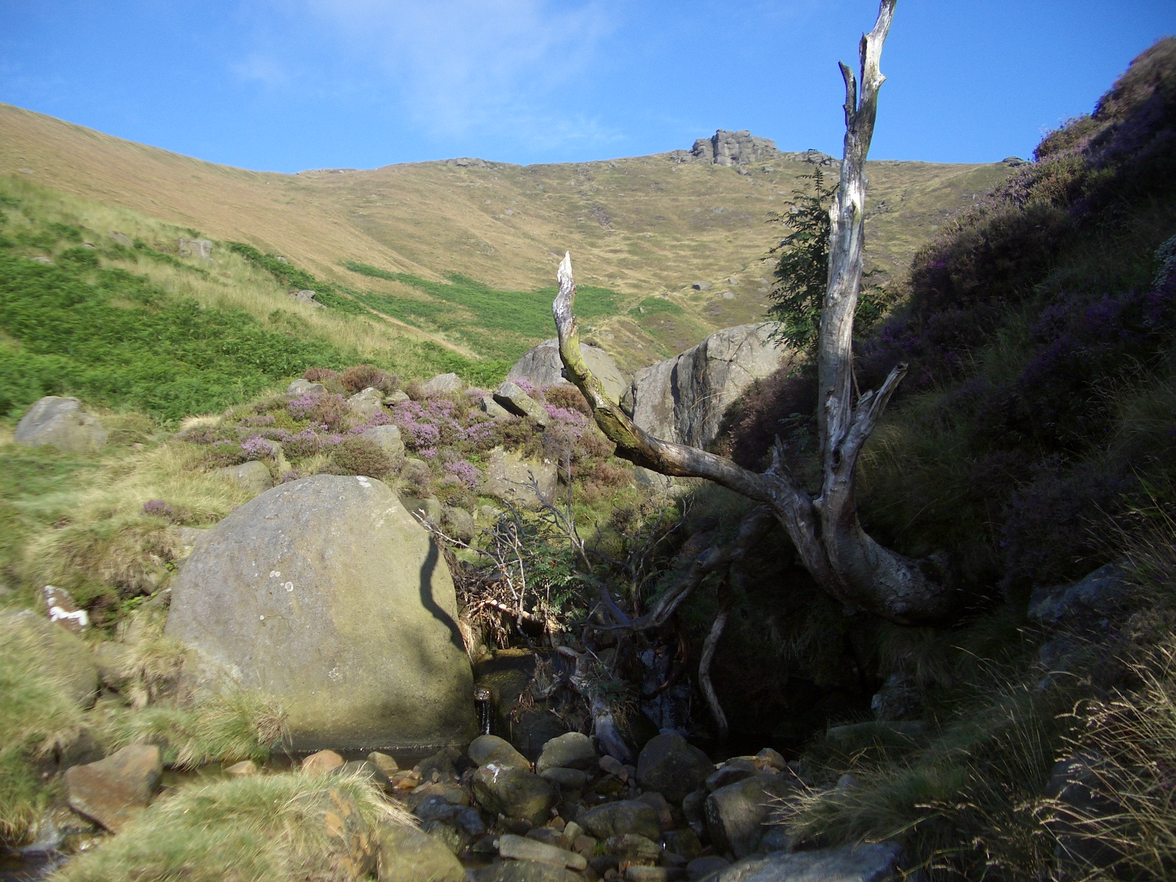 On 14th August I started out with the steep climb up Crowden Clough following the Crowden Brook. The first half-a-mile is pretty flat and wooded, but the gradient soon increases as the path becomes narrower and the woods give way to scrubland including gorse and heather.