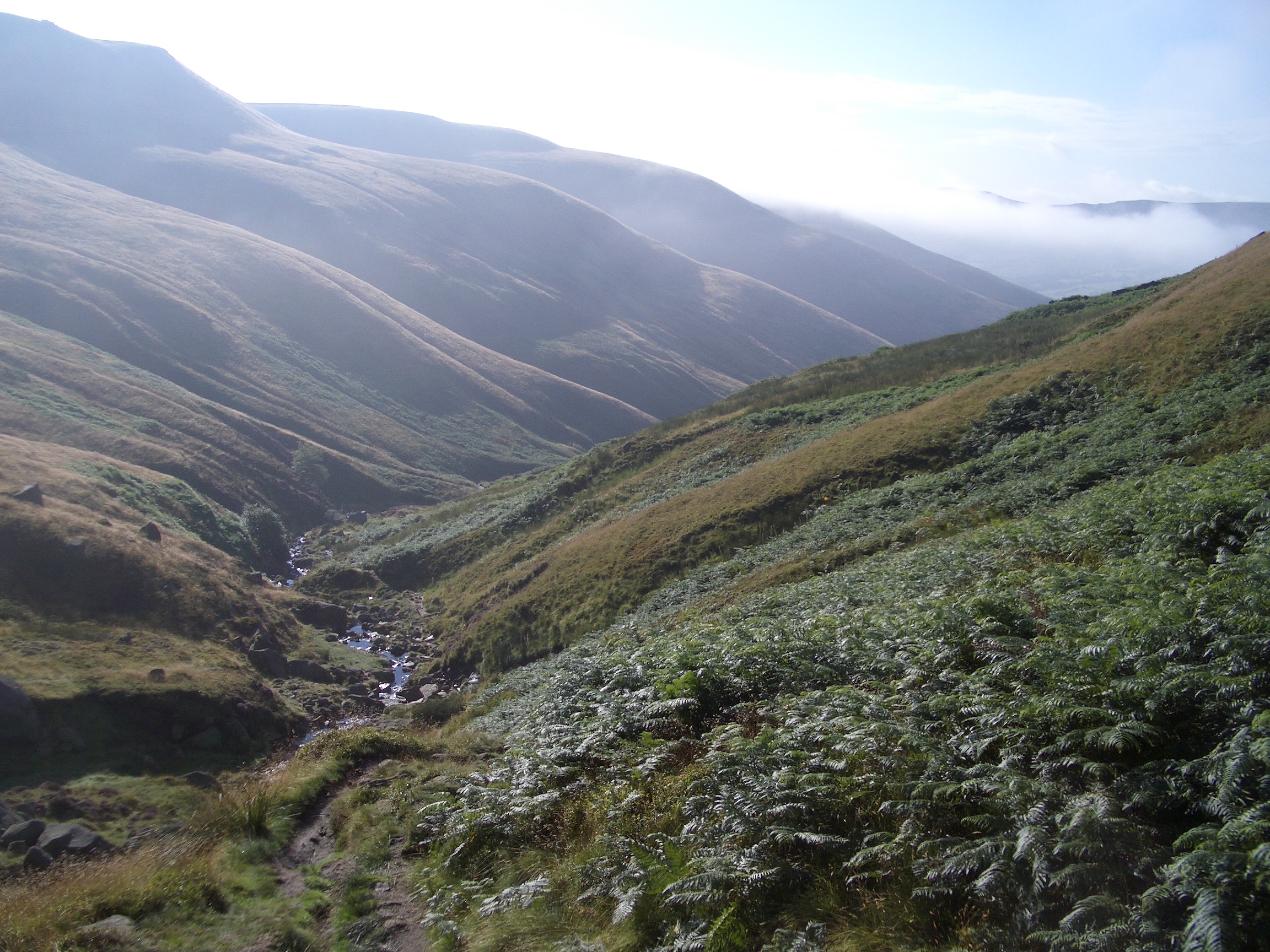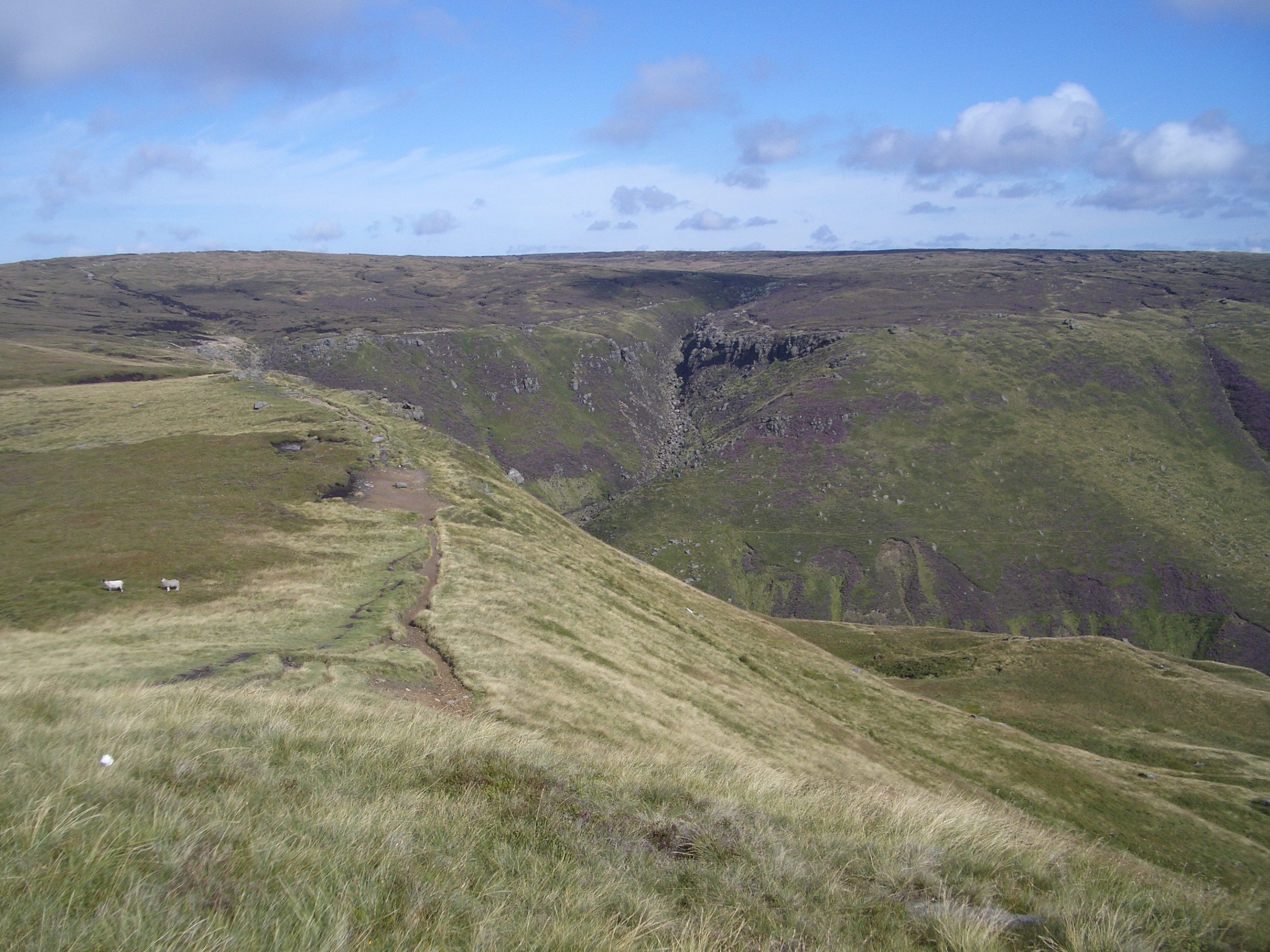 At Fairbrook Naze, I took my second unintentional diversion of the day and found myself going down the path into the stream below rather than following the edge path. Having crossed the stream, I could not find the path, so there was no point in going back, so I simply headed up the steep slope to where the edge path must be. This however was steeper than I expected, and in one or two places I was clutching large tufts of grass to prevent myself slipping back down. I also came across a rotting carcase of a dead sheep on the steep slope. I eventually found the edge path, almost at the place where the path turns west again.