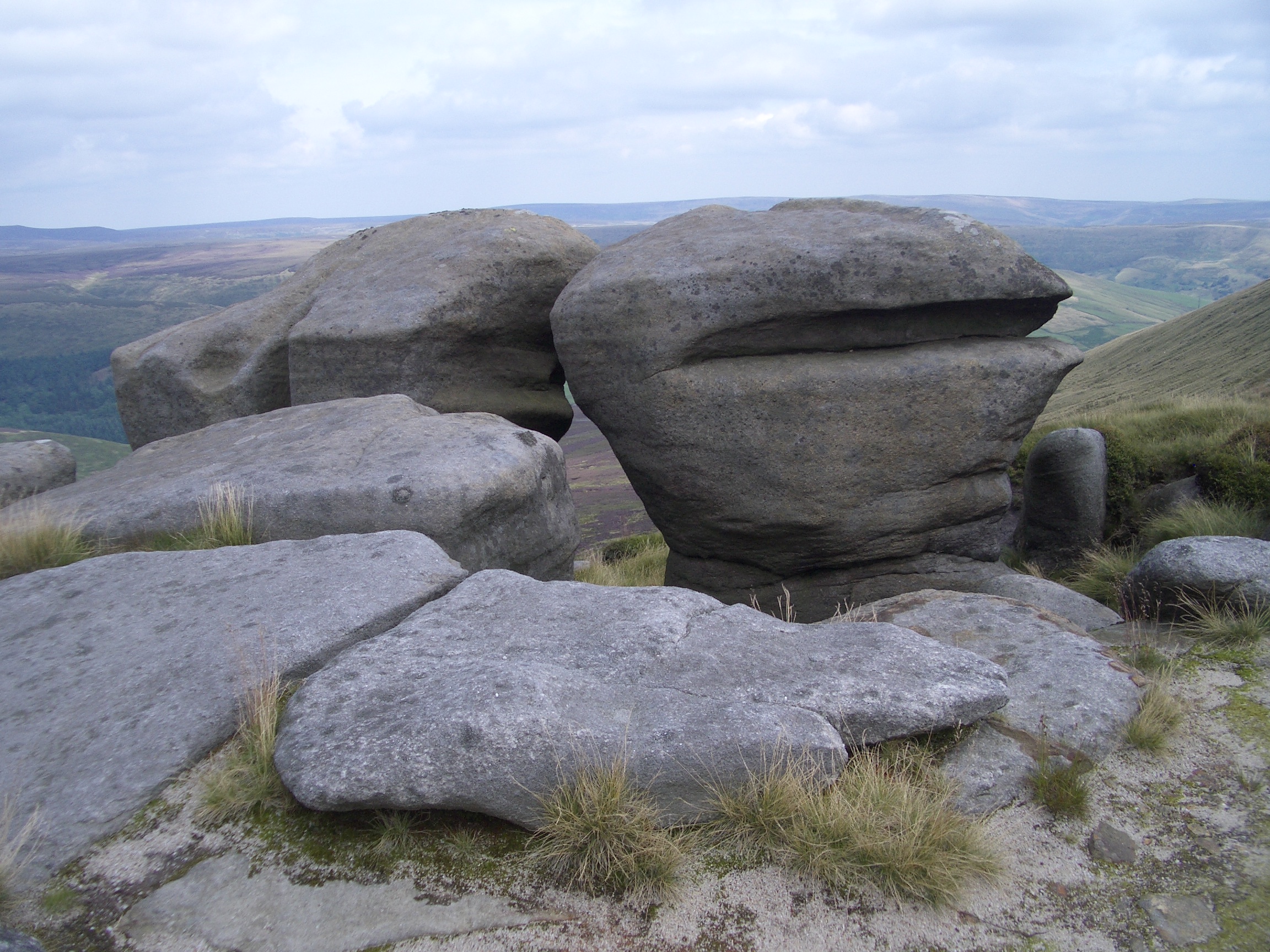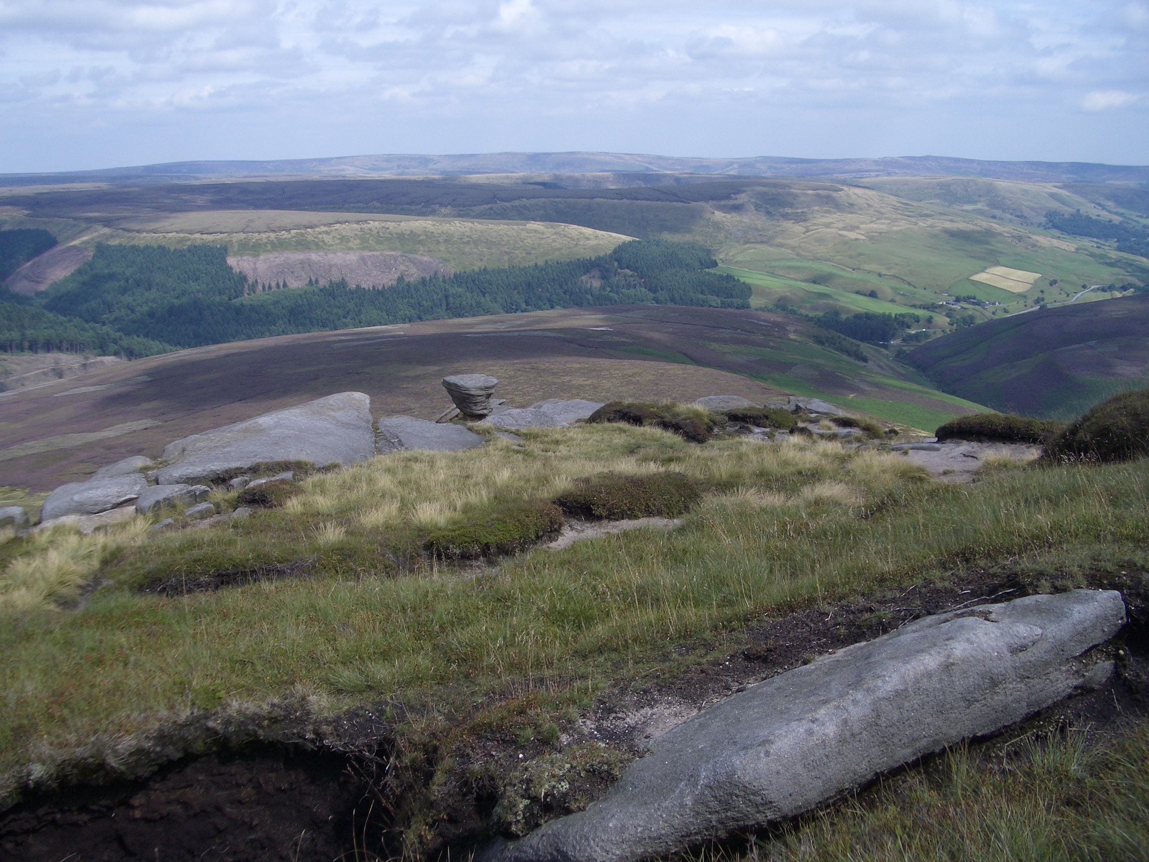 I continued eastward on the edge path, past the easily-recognised “Ringing Roger” stones, which I had visited on a previous holiday. There are some good views over Edale and beyond.