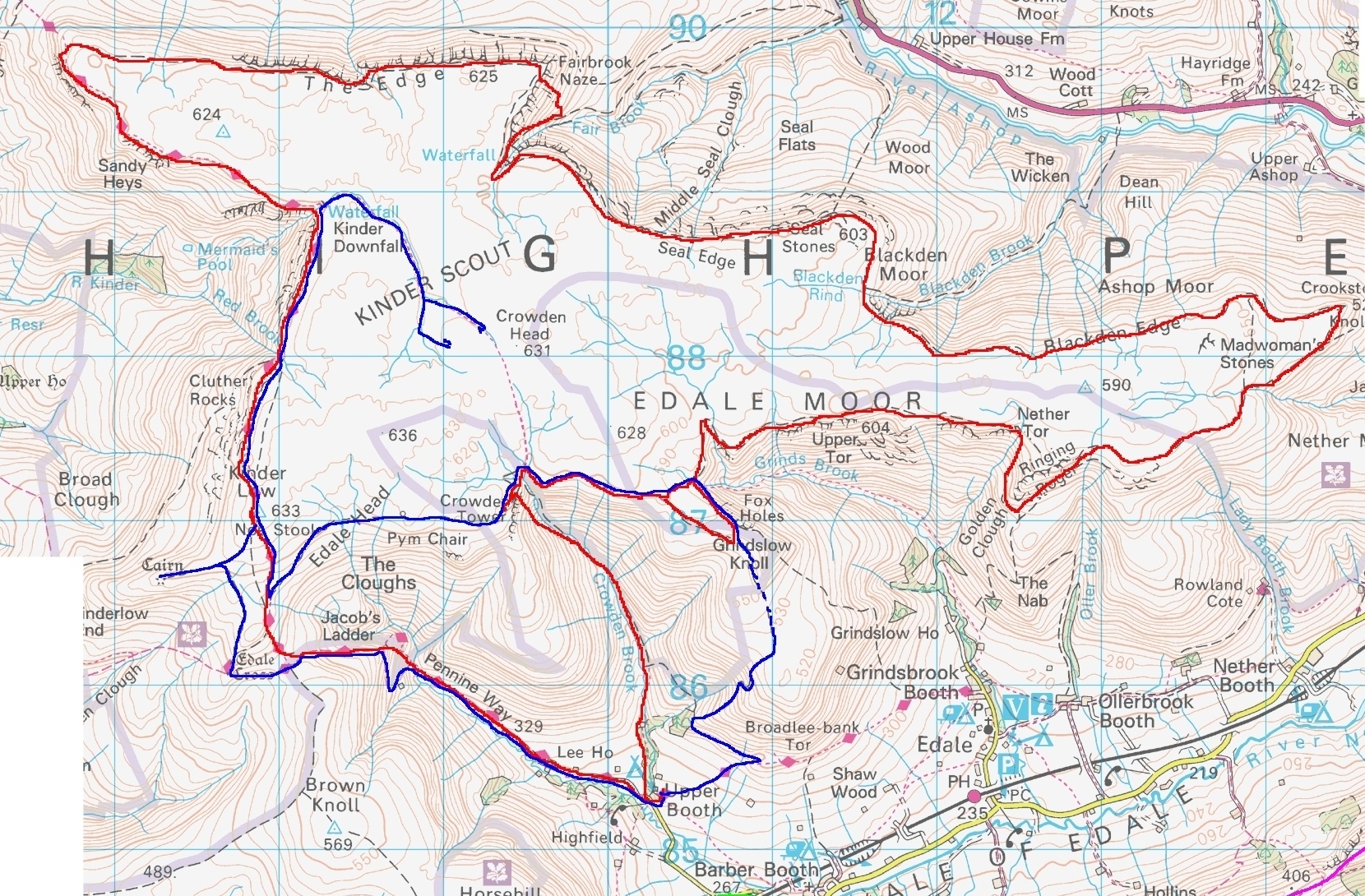 I came down from the plateau from Kinder Low via Jacob s ladder and was back at my tent by 4.50pm.