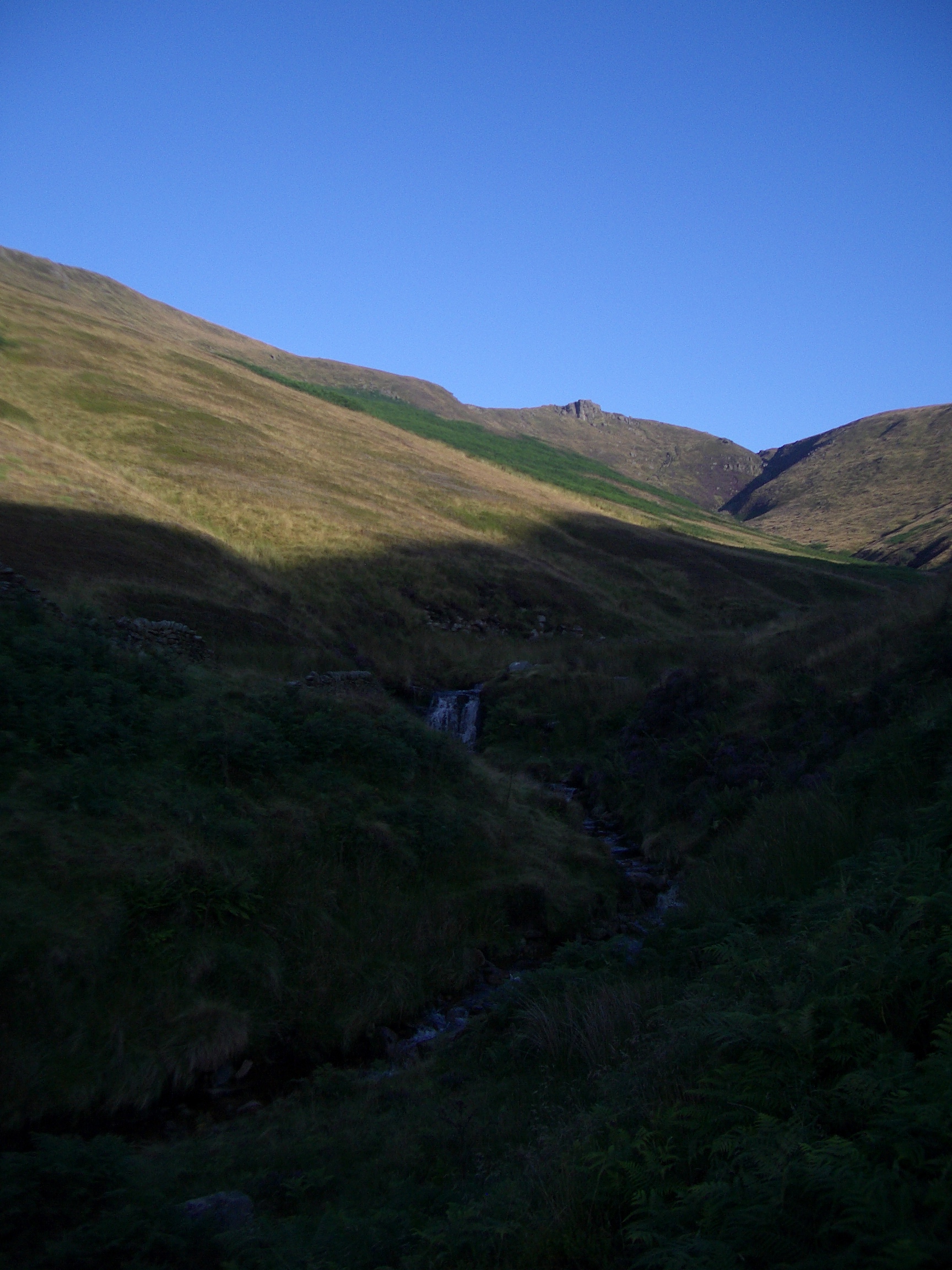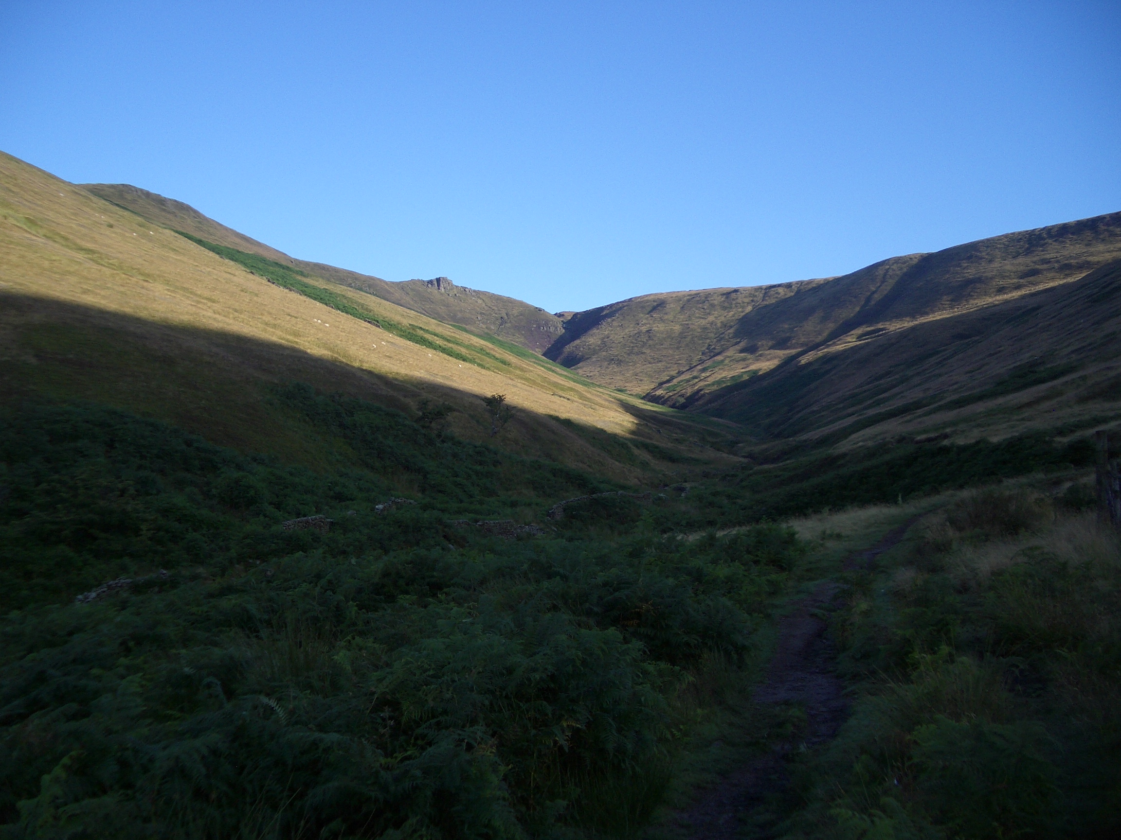 At Fairbrook Naze, I took my second unintentional diversion of the day and found myself going down the path into the stream below rather than following the edge path. Having crossed the stream, I could not find the path, so there was no point in going back, so I simply headed up the steep slope to where the edge path must be. This however was steeper than I expected, and in one or two places I was clutching large tufts of grass to prevent myself slipping back down. I also came across a rotting carcase of a dead sheep on the steep slope. I eventually found the edge path, almost at the place where the path turns west again.