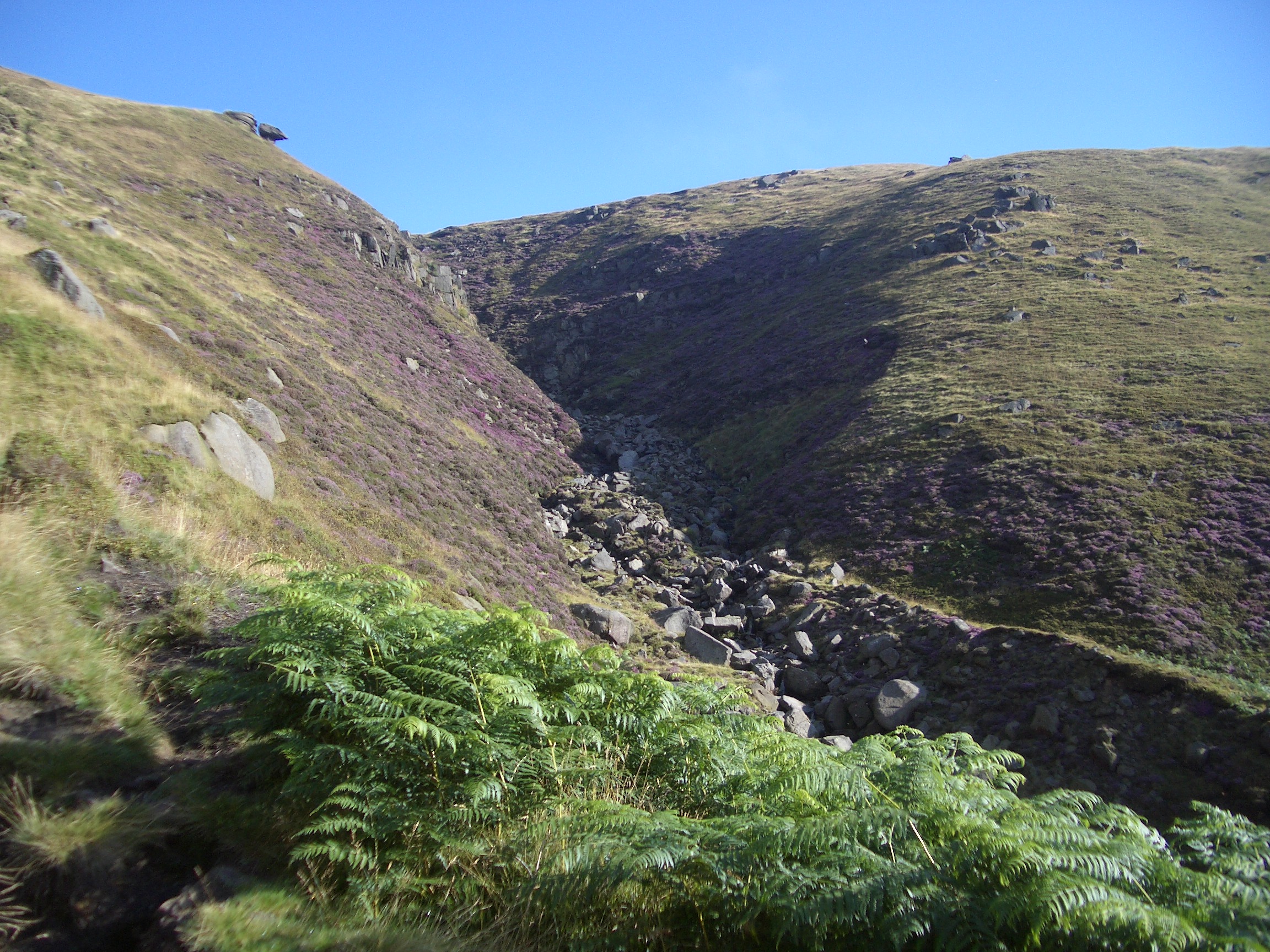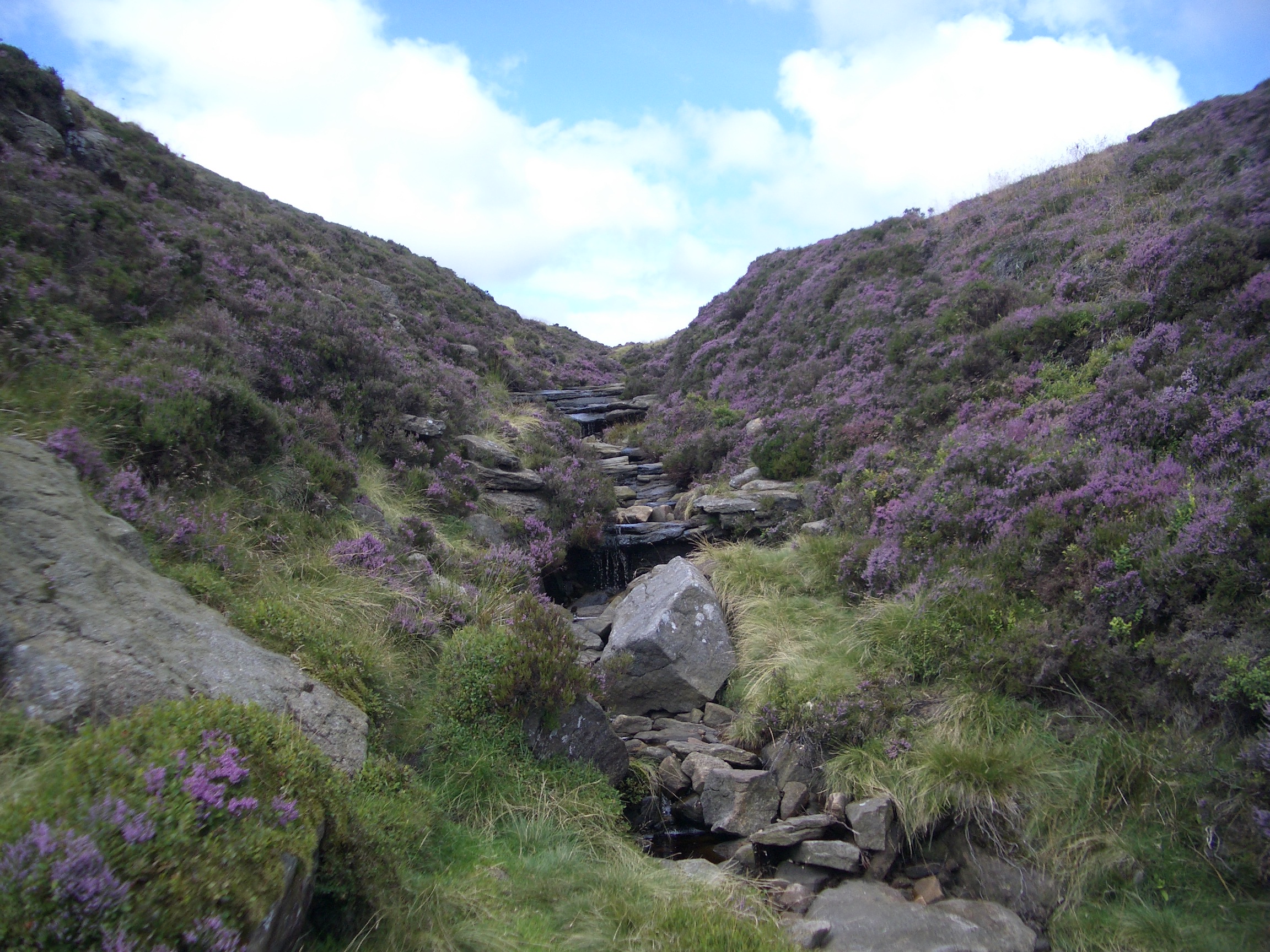 On 14th August I started out with the steep climb up Crowden Clough following the Crowden Brook. The first half-a-mile is pretty flat and wooded, but the gradient soon increases as the path becomes narrower and the woods give way to scrubland including gorse and heather.