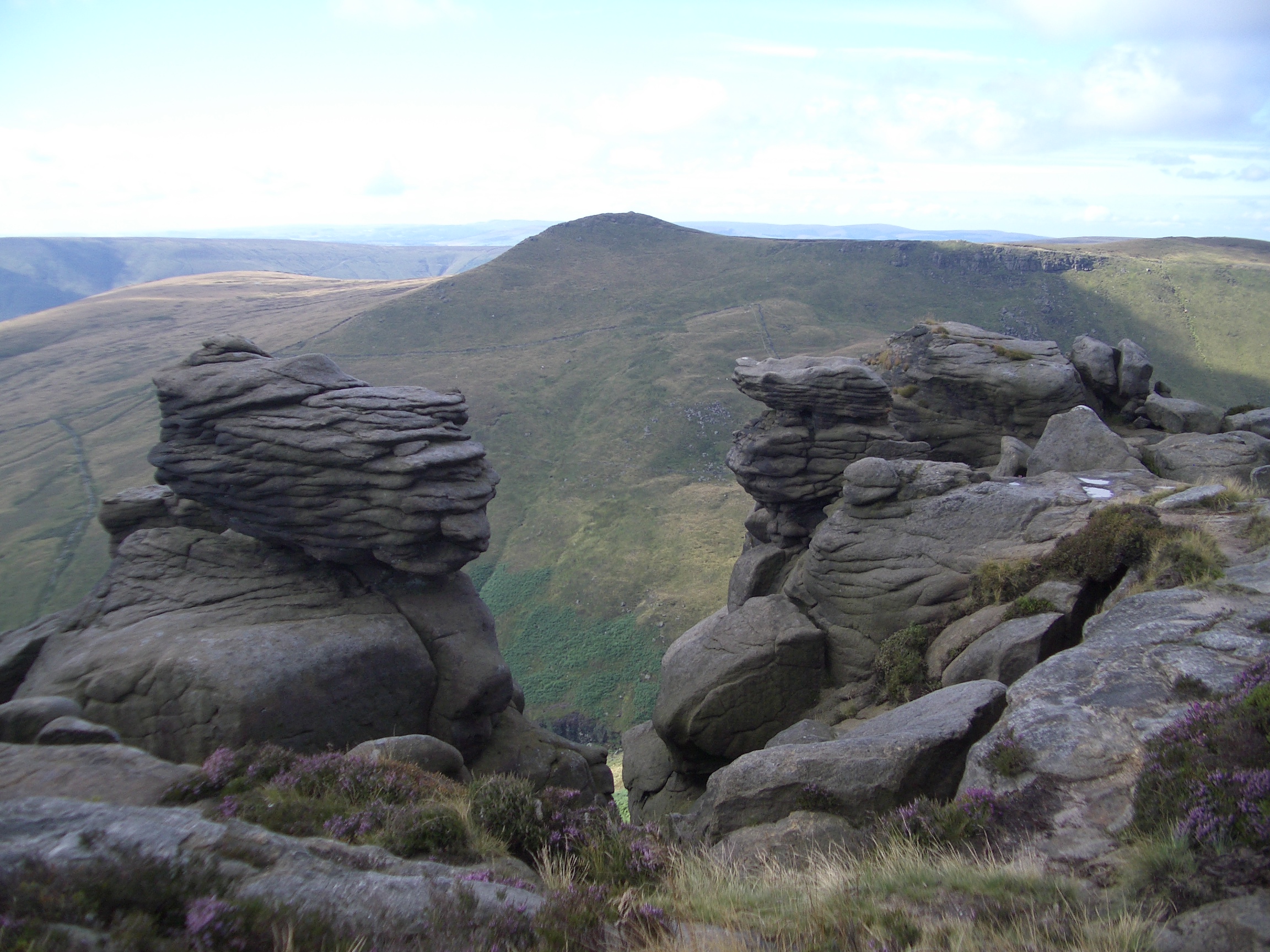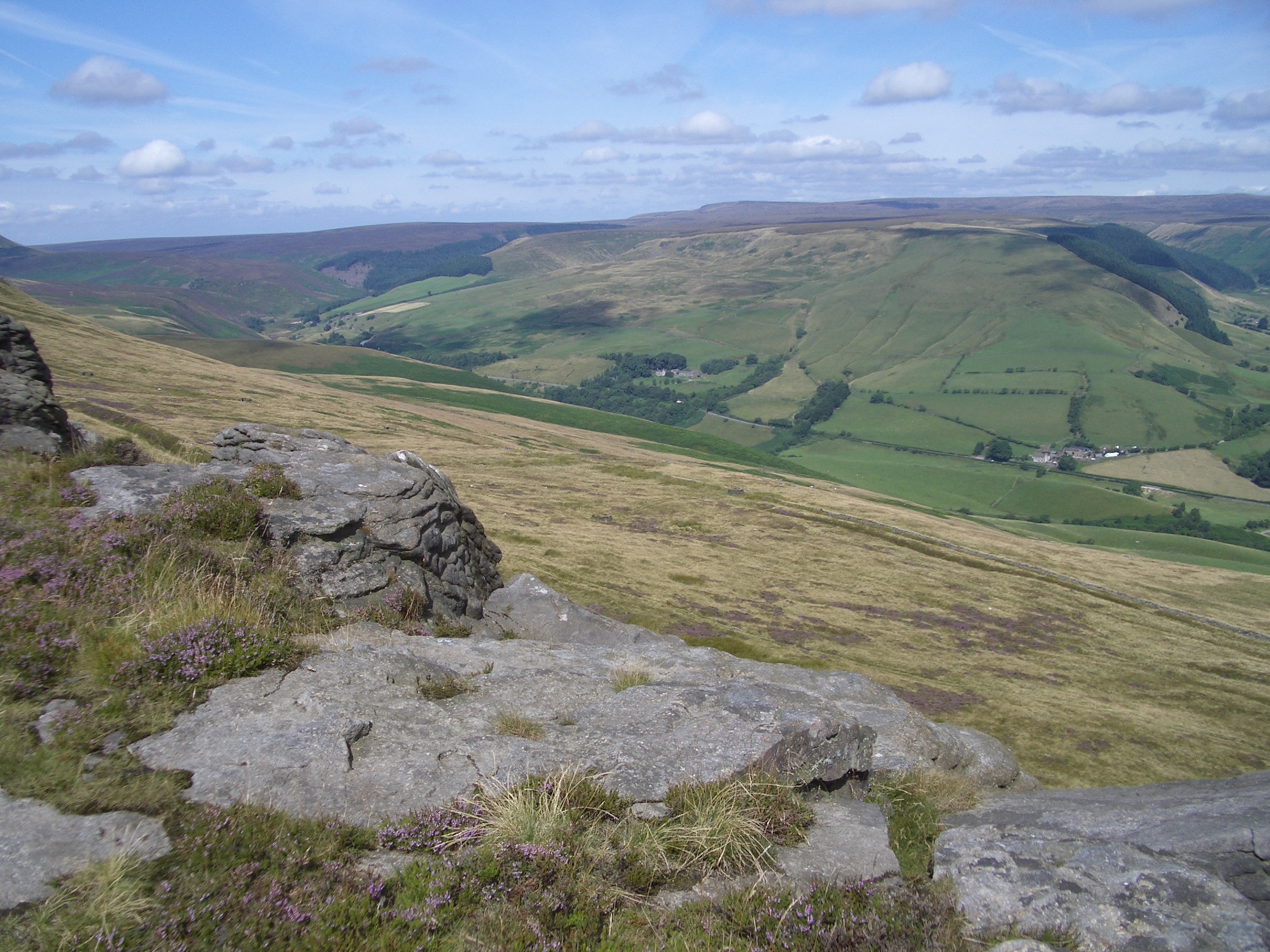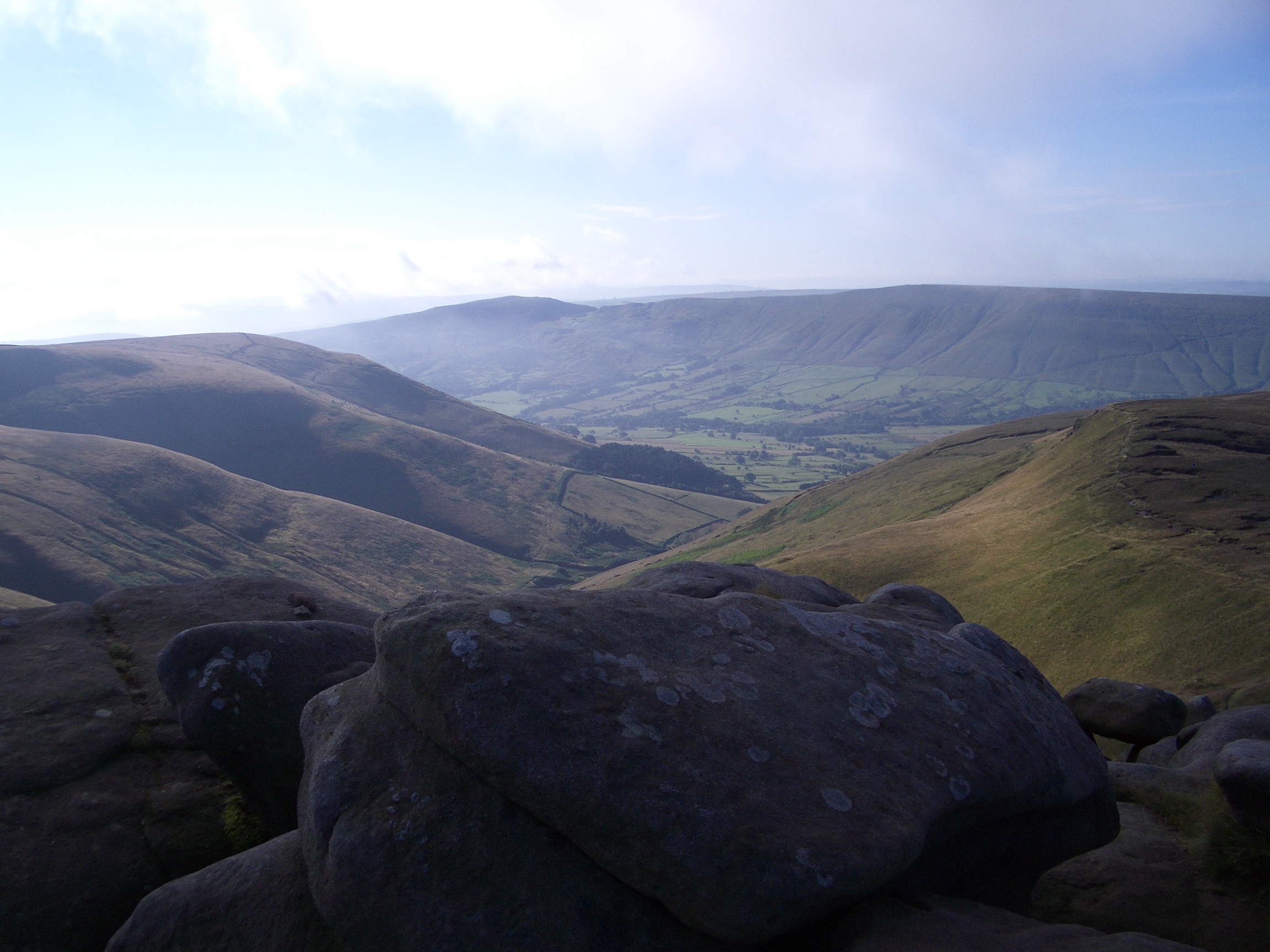 I continued eastward on the edge path, past the easily-recognised “Ringing Roger” stones, which I had visited on a previous holiday. There are some good views over Edale and beyond.