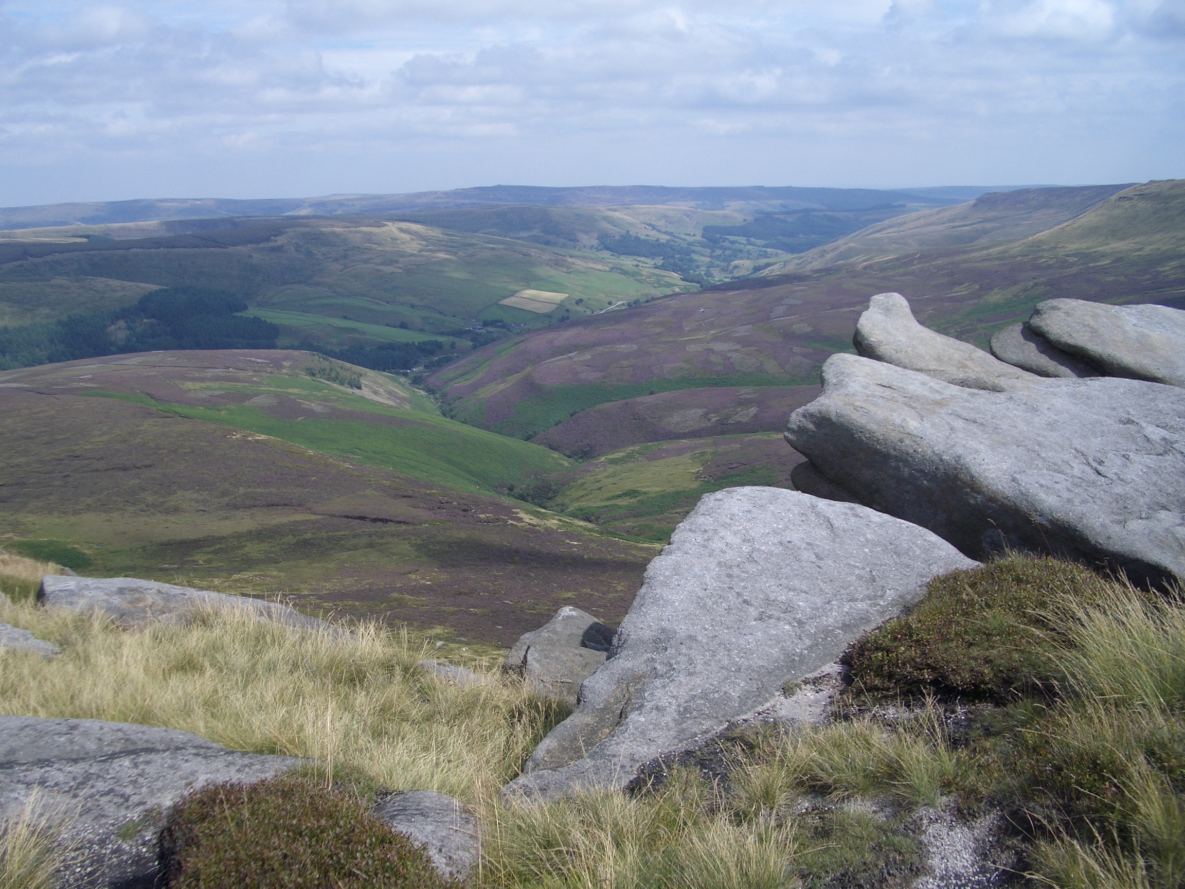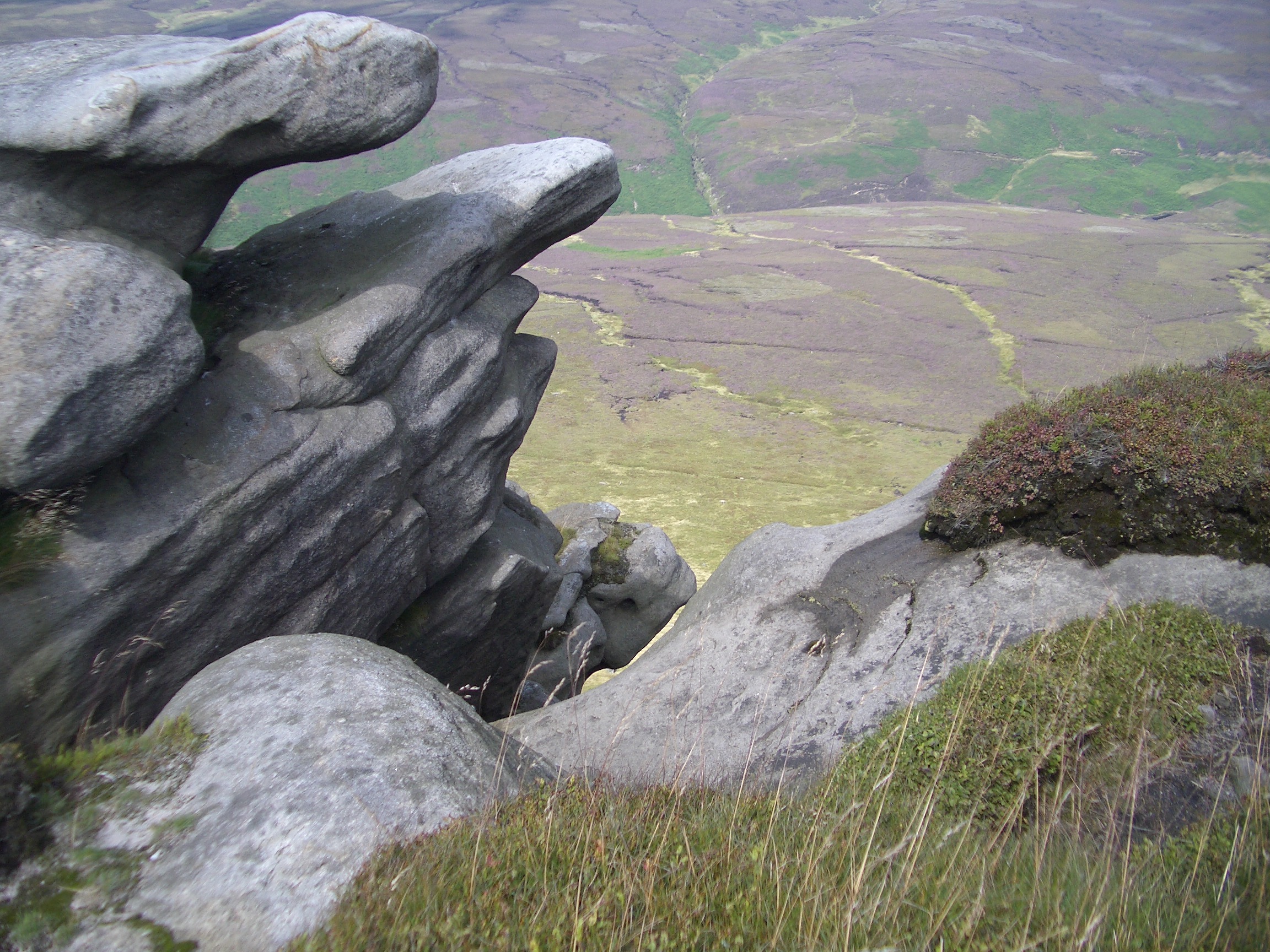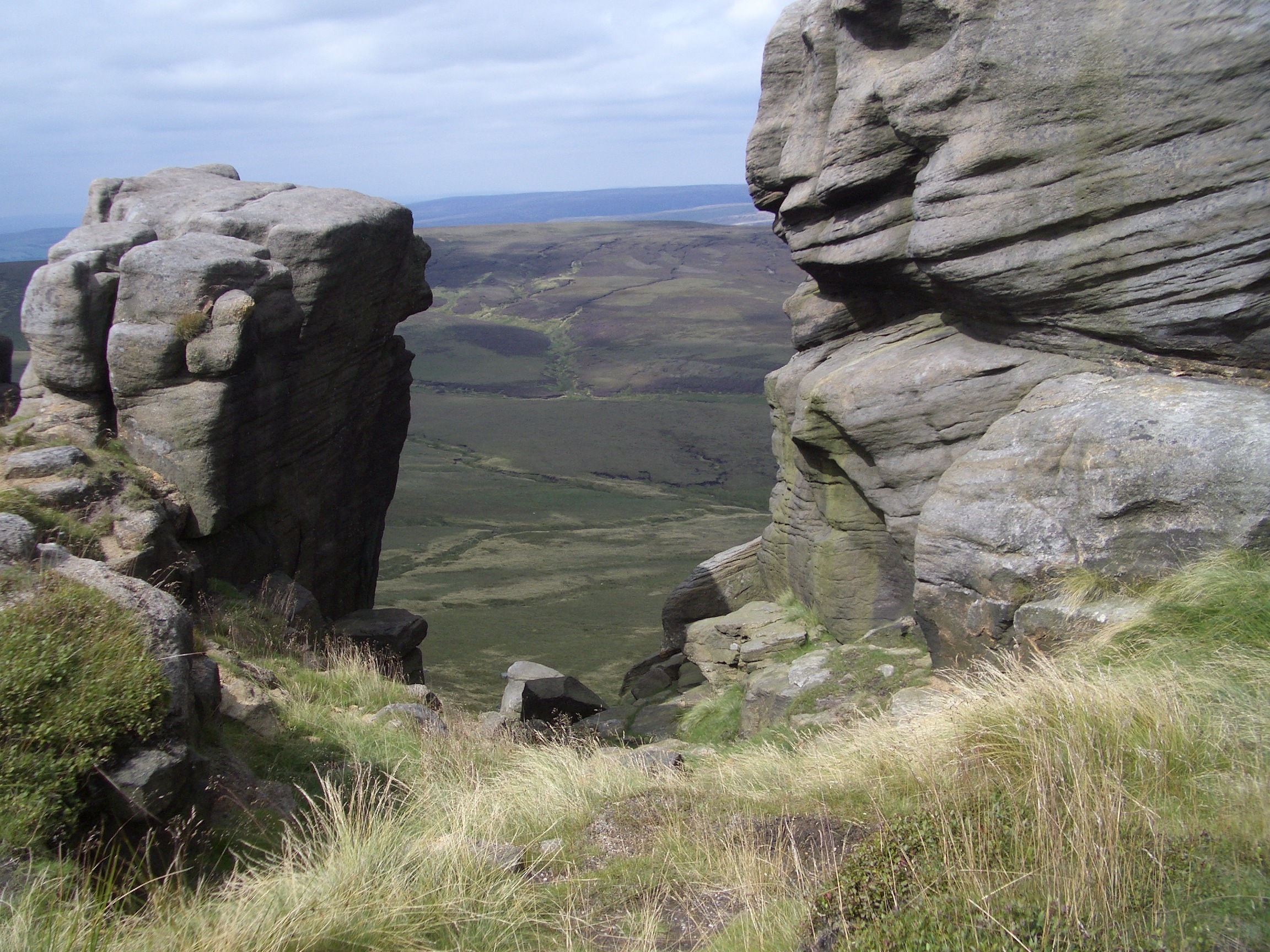I continued eastward on the edge path, past the easily-recognised “Ringing Roger” stones, which I had visited on a previous holiday. There are some good views over Edale and beyond.