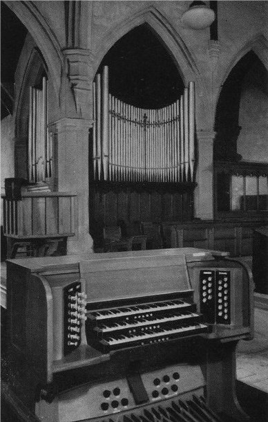 The picture below right is a view of the "New Organ" in 1962, photographer unknown, but probably taken as a publicity photograph by the John Compton Organ Company.